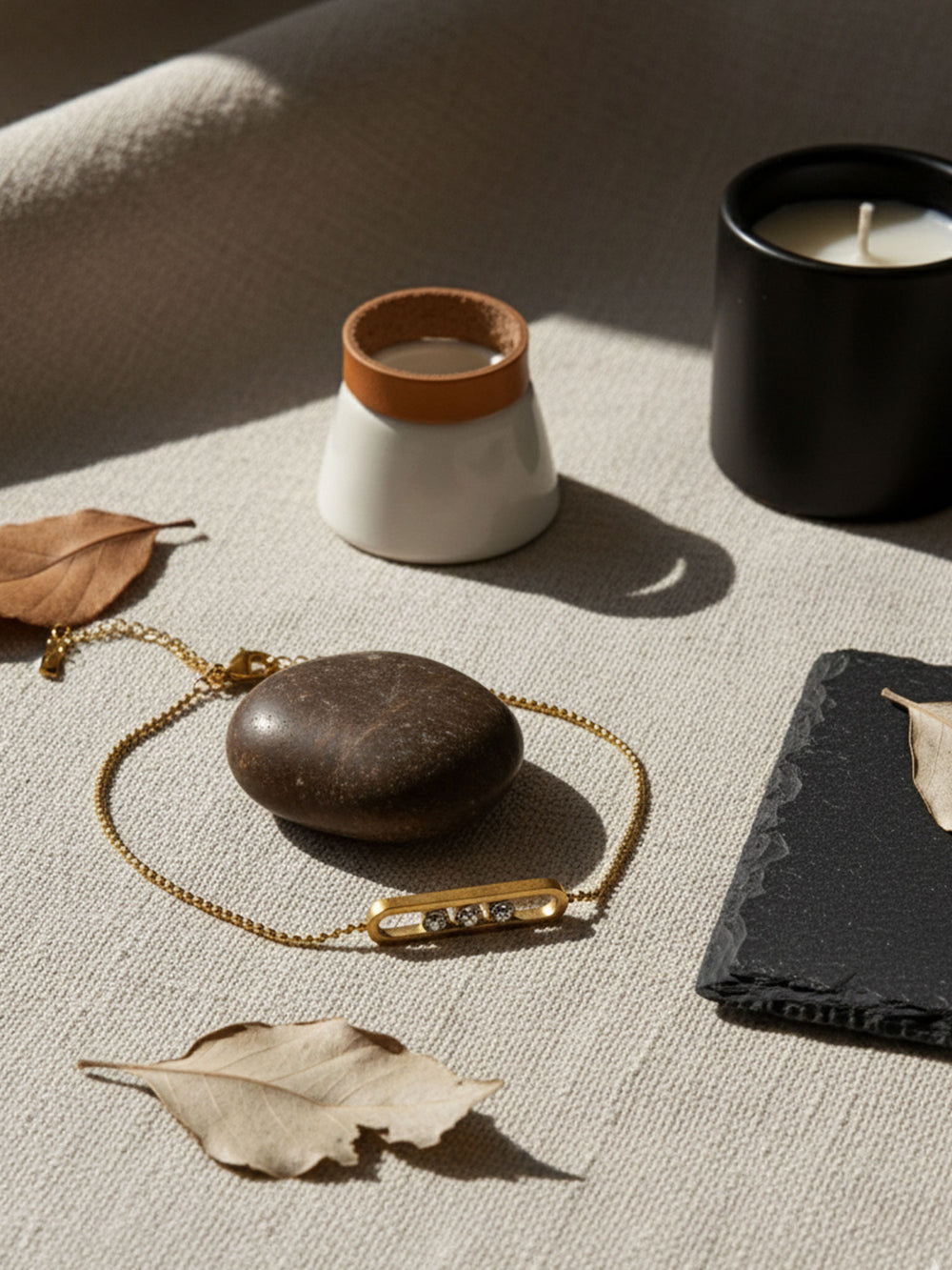 Introducing the Golden Trio Bar Bracelet by Rahre, a delicate and modern accessory designed to add effortless shine to your everyday look. With its sleek open-bar design and three sparkling stones, this stainless-steel bracelet blends minimal elegance with timeless charm.