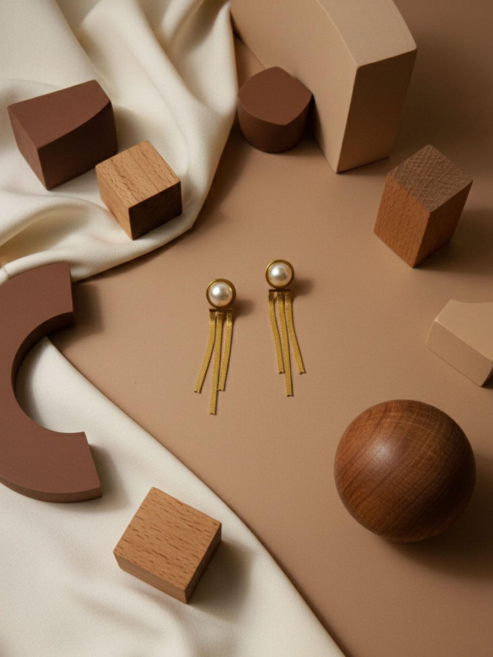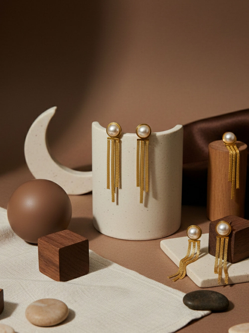 The RAHRE Pearl Tassel Stud Earrings bring a graceful mix of classic and modern style. Each earring features a round pearl-like detail set in a warm gold-tone frame, with slim tassel strands flowing gently beneath. The movement of the tassels adds a soft, elegant finish that stands out without feeling heavy or overdone.