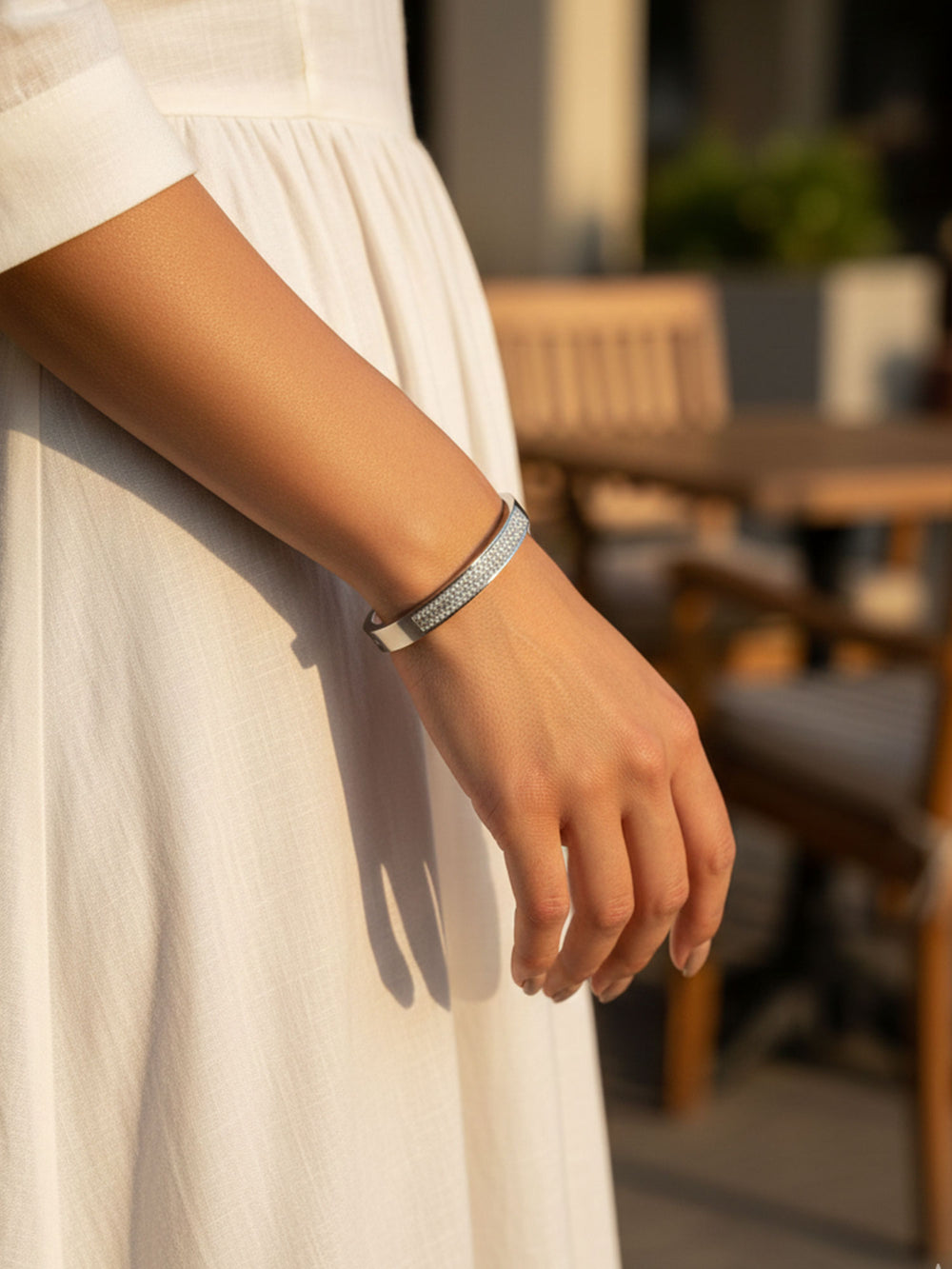 Elevate your everyday style with the Silver Pave Shine Bangle by Rahre, a sleek, modern bracelet crafted for women who love understated luxury. Made from durable stainless steel, this slim bangle features a beautifully arranged line of shimmering crystals along the front, giving it a refined sparkle without being overpowering.